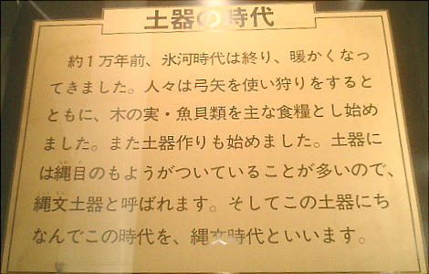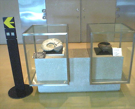 が分かるような内容で書かれている。してみると、このアンモナイトと土器の陳列は、「自然科学」と「歴史」だよ、と教えている