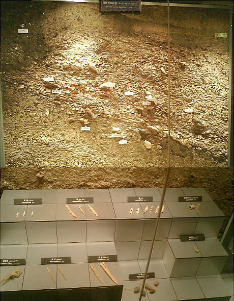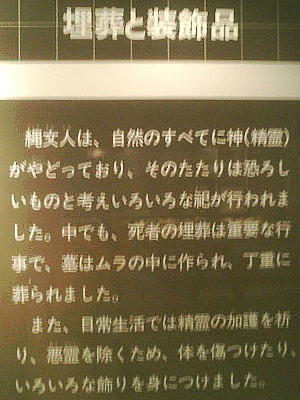 五つの小テーマで紹介されている。とくに<縄文人のくらし>では、竪穴従居と発掘された人骨から復元した縄文人が展示されてい