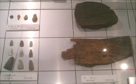 わけ紹介されている。「旧石器時代のくらし」では、県内各地の代表的な石器が展示されている。「土器の時代」とした縄文時代は、