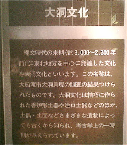 た土器を基に6つに分類し、縄文時代晩期の土器に大洞式土器の名称が用いられるようになり、大洞文化とも呼ばれるようになって