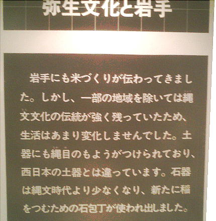 「いわての夜明け」というこの展示室では、このような旧石器時代から平安時代初期に至る岩手の歩みが、時代別に四つのテーマに