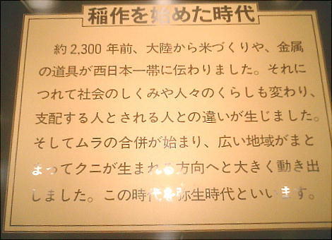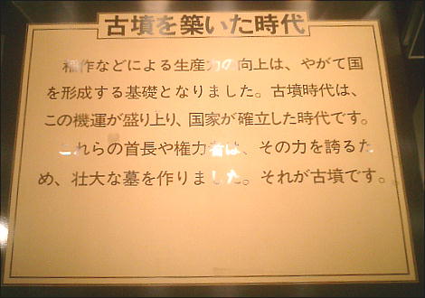 る。「稲作を始めた時代」では、最近の発掘資料を中心に展示が構成されている。次の「古墳を築いた時代」では、古墳模型や従居