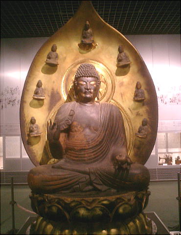 入り口にデカイ仏像があって、その後ろには恐竜の復元化石が。こんなのが今いたら怖かろうな。