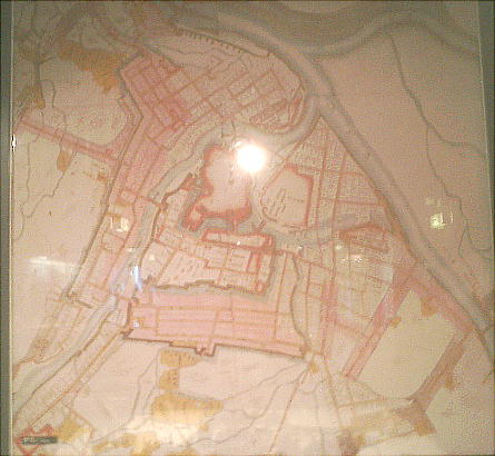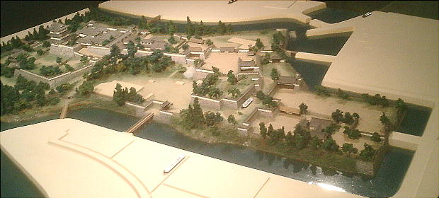 が進んでいて、見学できる。城の囲いは土を着き固めた土塀である。ところどころ望楼がある。