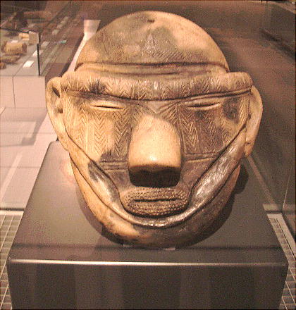げ様の繊維質のものを差し込むあながあけられ、儀式をとりしきる呪術者の姿を連想させる。