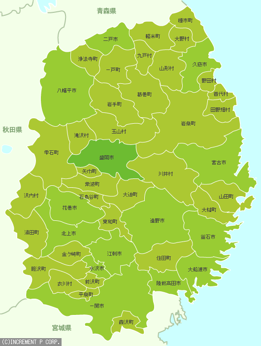 近世の岩手県は、北半は南部氏の盛岡藩領、南半は伊達氏の仙台藩領となった。後に盛岡藩から八戸藩、仙台藩から一関藩が独立