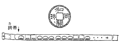 葬品を納めた。か帯金具は中央の貴族の身分を示すもので、中央との政治的な交流によって入手したと考えられている。和同開珎は、