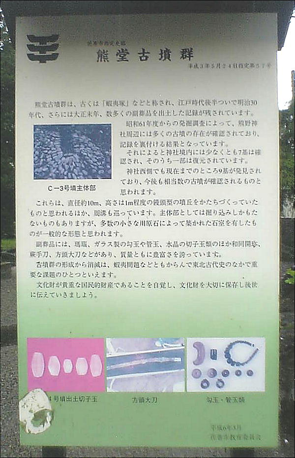 称され、江戸時代以来数多くの副葬品を出土したことで知られる。熊堂古墳群は北上川中流域に、多く分布する群集墓の一つで、直