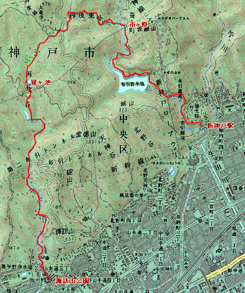 コ ース:新神戸駅→布引の滝→再度公園→新神戸駅(約5時間)