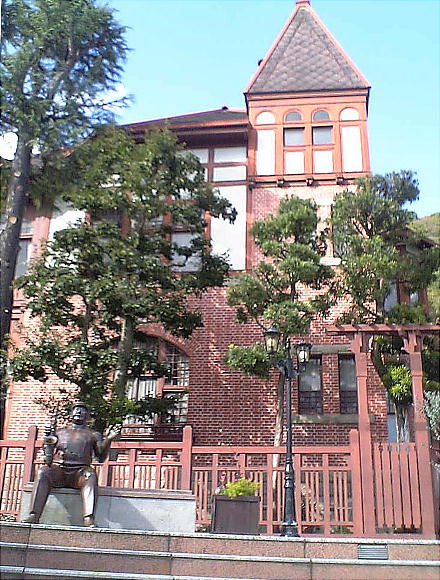 北野町の中公園に移設された赤レンガ造の門柱は、かつての居留地83番にあった英国商館(ジャーデン・マセソン)の門柱の一部