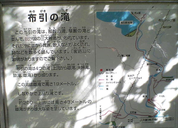 鉄 新神戸駅 徒歩10分で雌滝、そこから徒歩8分で雄滝である。