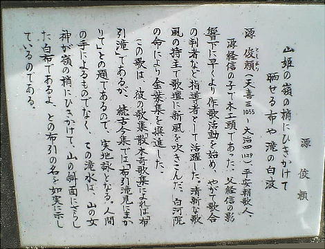 この滝は平安の昔から景勝の地として知られ、多くの人が訪れた。京都に住む貴族も旧山陽道を通って滝見物を楽しみに来ていた
