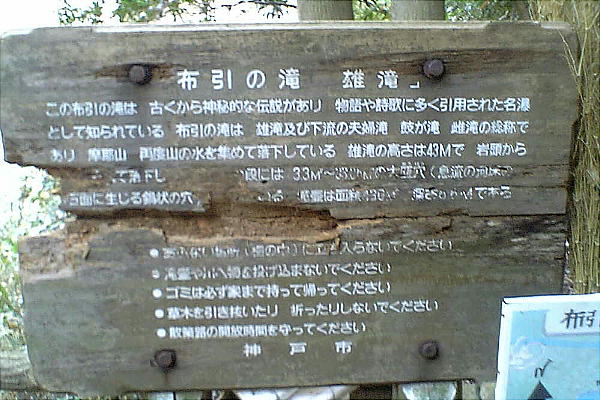 布引の滝は、日光の華厳の滝、紀州の那智の滝とともに三大神滝と呼ばれ、古くから物語や詩歌に取り上げられてきた。滝は、新