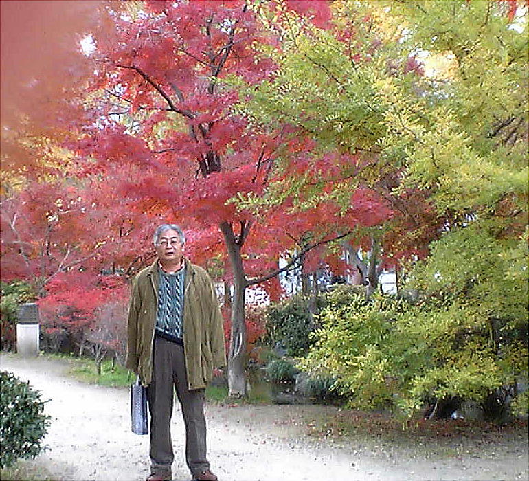 顔も赤いがこれは紅葉が反映しているのではなくて単に酔っぱらっているだけ。