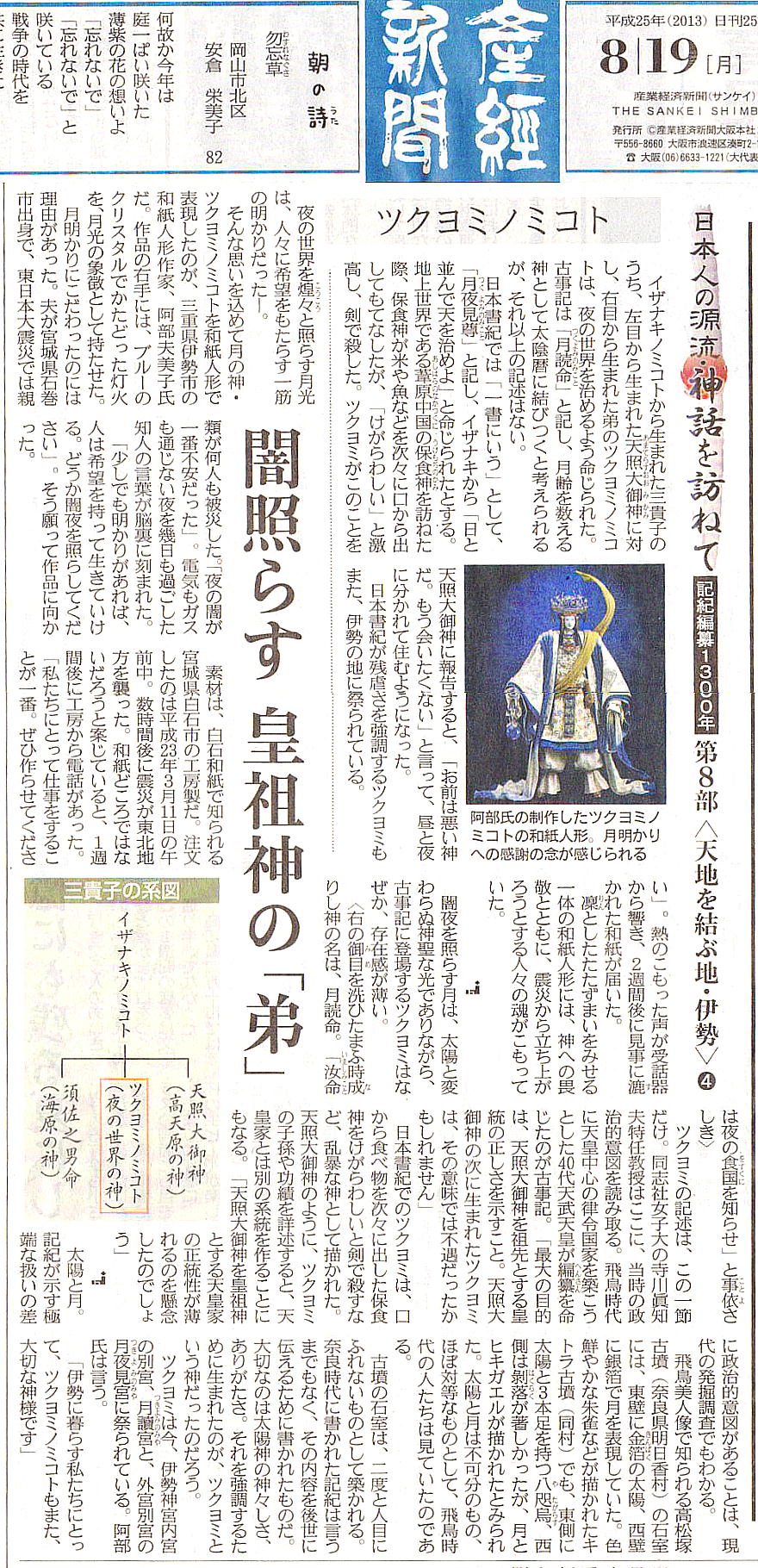 に重大な三神(三柱の貴子)を成す。一方、『日本書紀』では『古事記』とは逆に左目から生まれたという話、右手に持った白銅鏡