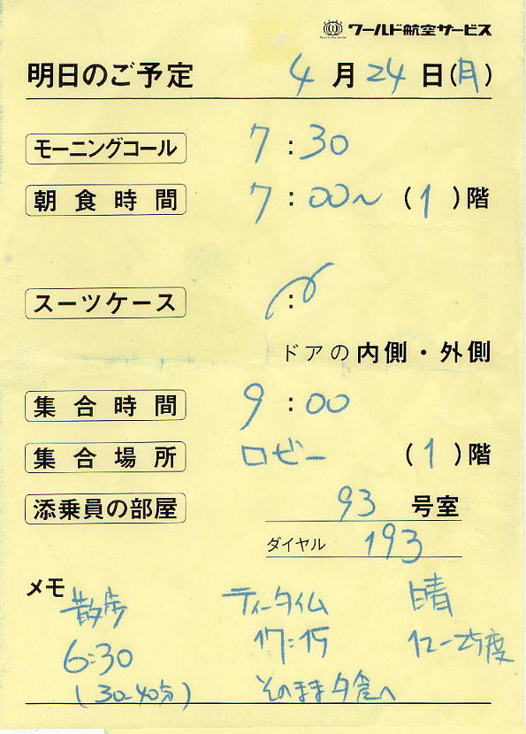 掃除も済んで無事部屋にcheck-in。午后の見物への出発を待つ。