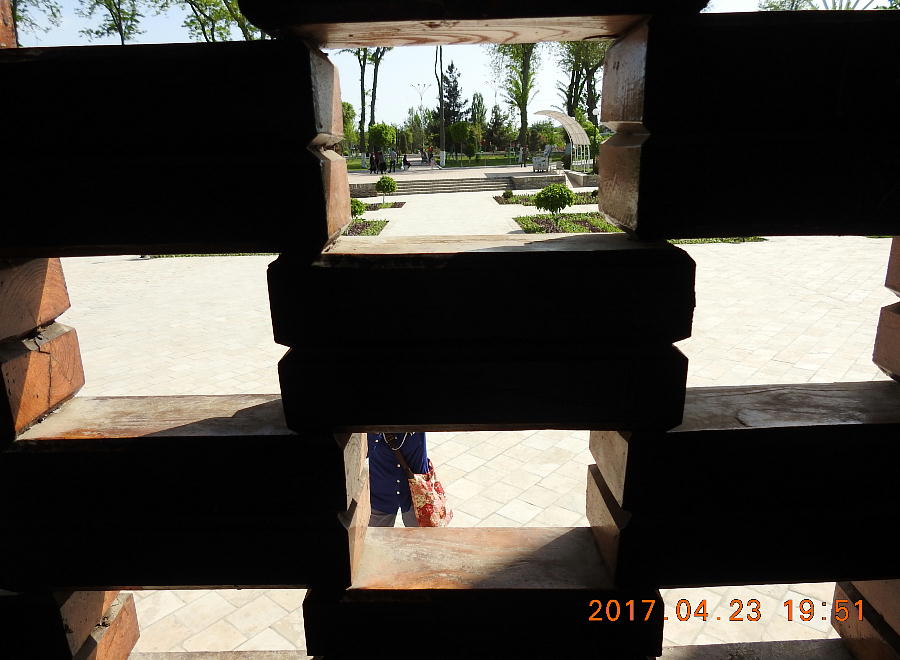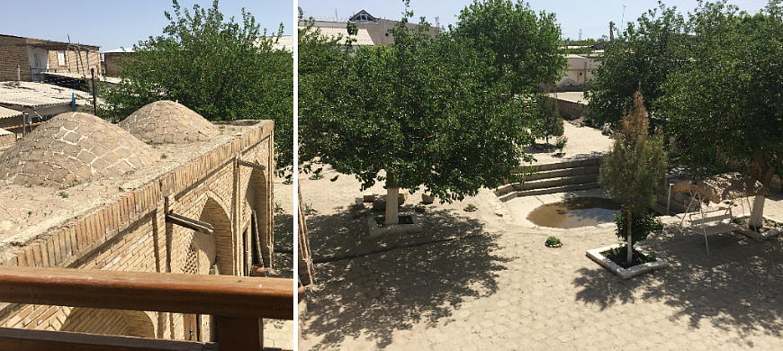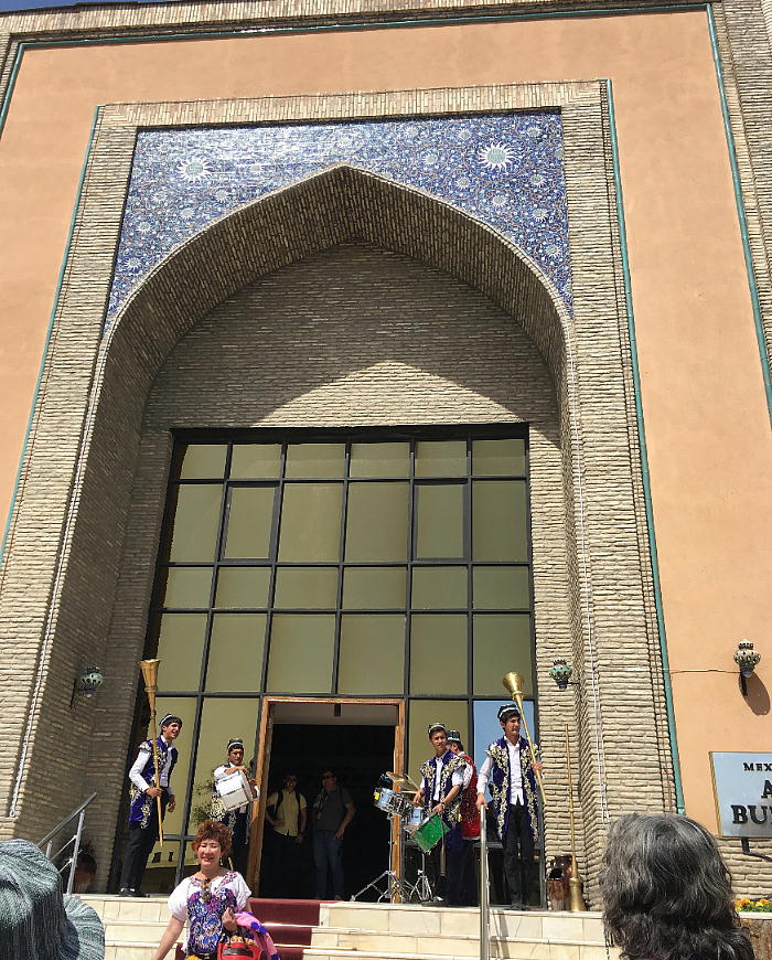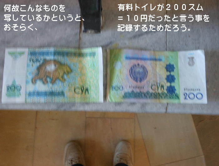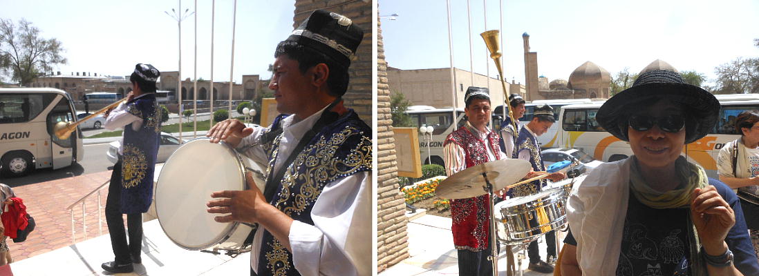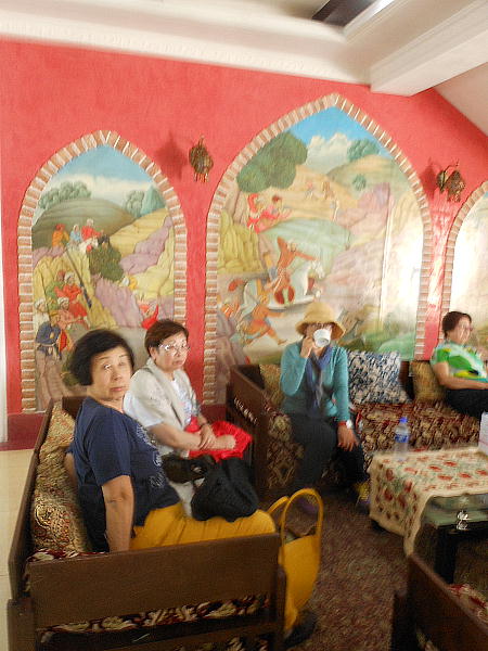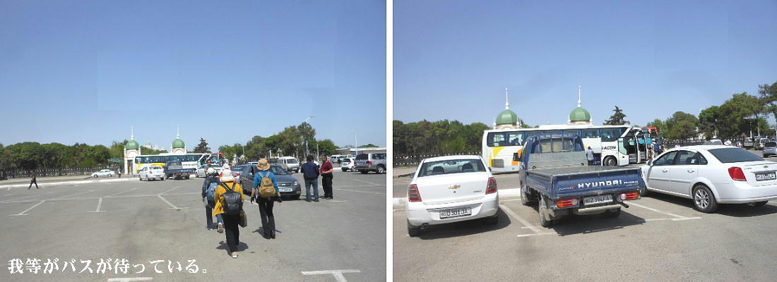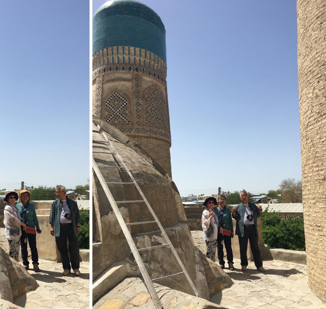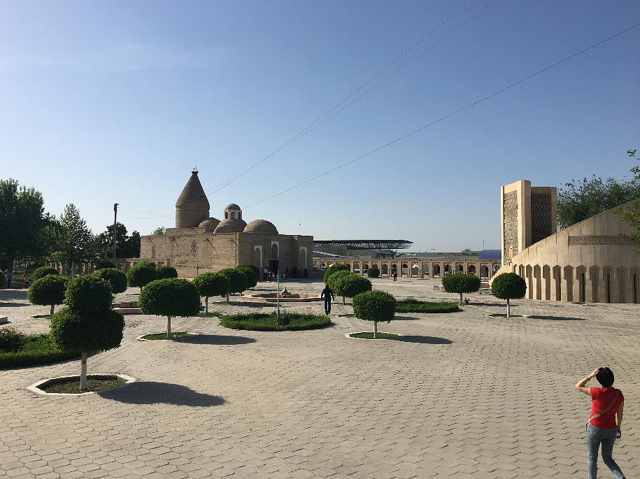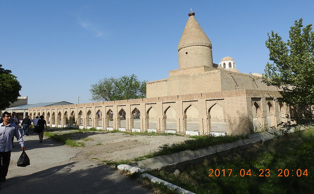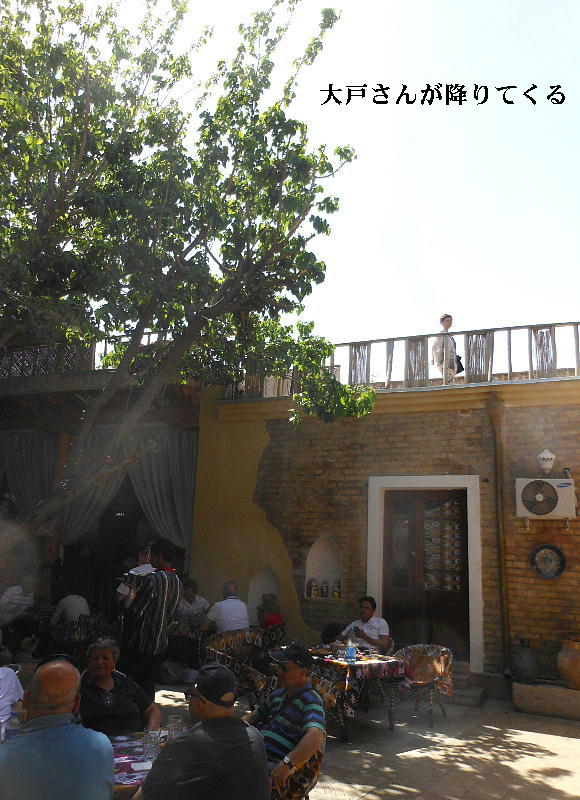 ほどなく、ブハラ駅到着。ここは終点だから慌てなくて良い。昨日のバスが、荷物を運んできて 駅前で待っていた。運ちゃんはちゃんと寝たのかな。ホテル横のレストランで昼食。それからチ エックインしたが、我々の部屋だけまだ掃除が終了しておらず、大戸さんの部屋で30分程待機。 アメリカでもこういう目にあった事があるが、まだまだだ。 昼食後「サマニー族の廟」と言うのを見に行った。