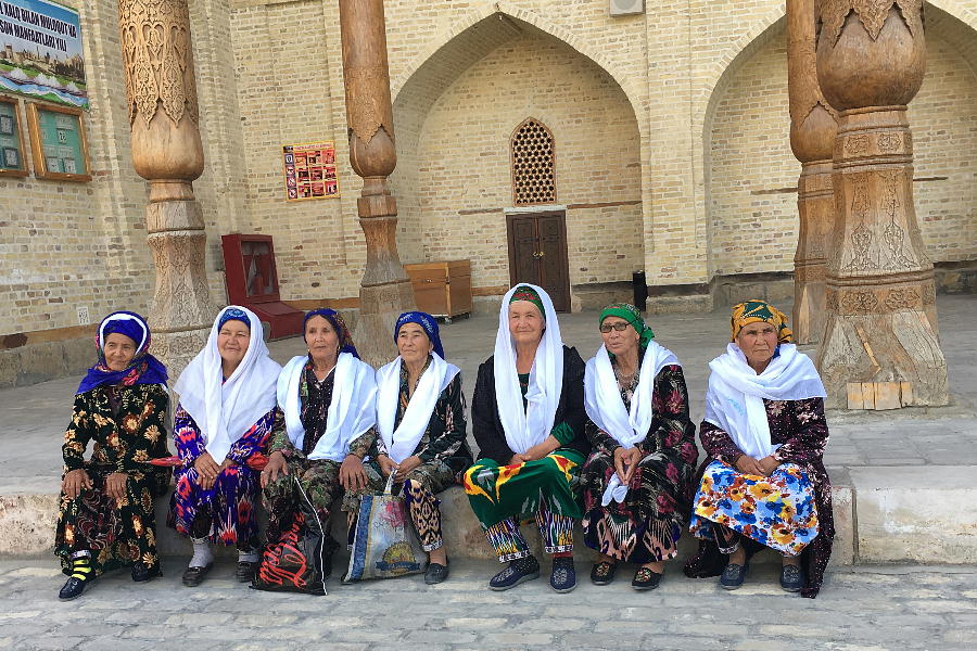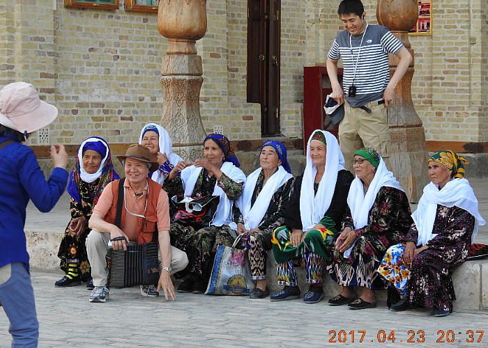 ブハラの女性も喜んで写真に収まってくれる。写真を撮ってはダメと言われていたのは何時の頃やら。