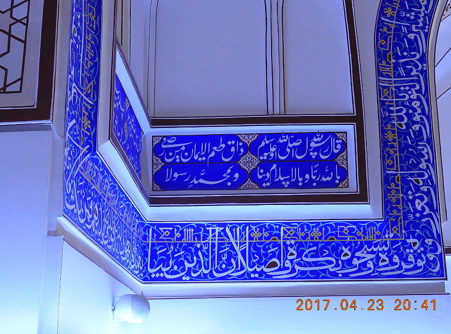 目の覚めるような青というのはこういうやつなんだろうねぇ。一面にアラビア文字(?)が書かれている。