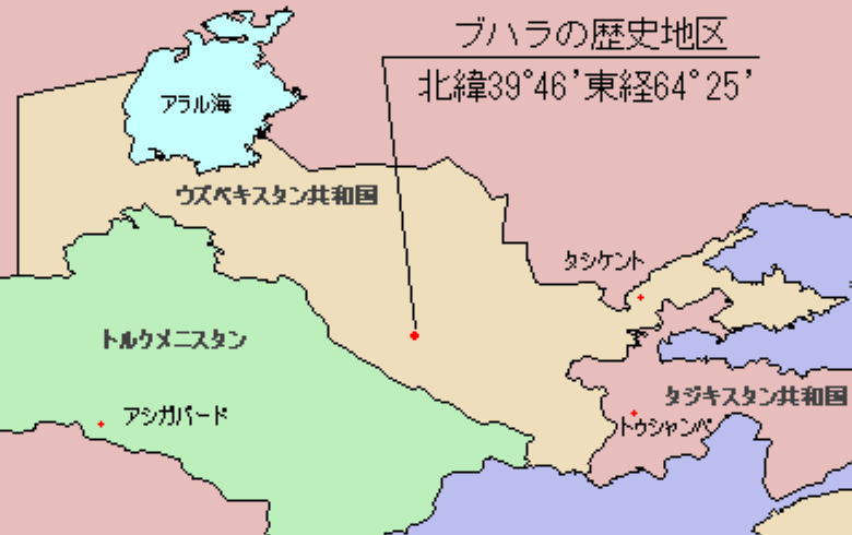 ブハラ 出典:ウィキペディアに加筆 「全世界には光が地上に降り注いでいるが、ブハラでは、光は地上から放たれている」。イスラムの金言にこう謳 われるブハラ。 ブハラ(ウズベク語: Buxoro)は、ウズベキスタンの都市で、ブハラ州の州都。ザラフシャン川下流域に古代より 栄えたオアシス都市で、1993年には、旧市街地がユネスコの世界遺産に登録されている。 人口は約23万7千人(1995年)。 古代からサマルカンドと並ぶいわゆるソグディアナの中心都市であり、イスラーム時代以降、特にサーマーン朝の 首都となってからもイラン・中央アジアにおける最も重要な都市のひとつであった。 また近代でも20世紀の初頭までブハラ・アミール国(ブハラ・ハン国)の首都が置かれ、西トルキスタンにおける 政治・文化の中心都市であった。特にサーマーン朝にはじまる近世ペルシア語文学の発信源としてこの都市が残し た足跡は大きい。また、シャイバーニー朝やジャーン朝においてはブハラの宮廷でペルシア語に加え、チャガタイ 語文芸運動を隆盛させその中心都市としても発展した。 このような歴史背景から、現在は住民の大多数が民族籍上ウズベク人とされているものの、住民の間ではペルシア 語系のタジク語が広く話され、タジク人としてのアイデンティティを有する者も数多く存在する複雑な民族構成を もつ。 ブハラは、ザラフシャン川下流域のオアシス地帯に位置し、その中心都市である。約220キロ東にサマルカンド、 450キロ北東にウズベキスタンの首都タシュケントが位置している。約85キロほど南西がトルクメニスタンとの国 境であり、トルクメニスタンのテュルクメナバートは約100キロ南西である。産業は天然ガスを産出するほか、繊 維、絨毯などの生産でも知られる。旧市街地が世界遺産に登録されて以降は観光産業にも力を入れている。