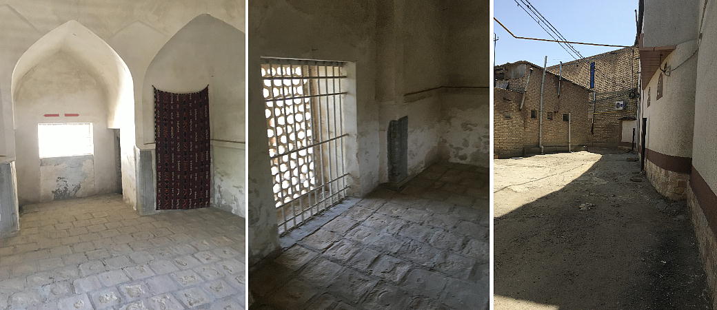 ドームの下に大きなホールがあり、そのホールのミヒラブのニッチは鍾乳石形の飾りで装飾されている。20 世紀の初頭、モスクの正面は、高い木製のアイウ”ァンで覆われていた。1917年に職人のウスタ・シリン によって、貯水池の岸にカリャン・ニナレットに似ている塔が建てられた。