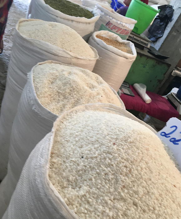 ココはお米屋さんである。これは試食という訳にはいかないが、綺麗な米が並んでいた。オバサンも人なつっこい。