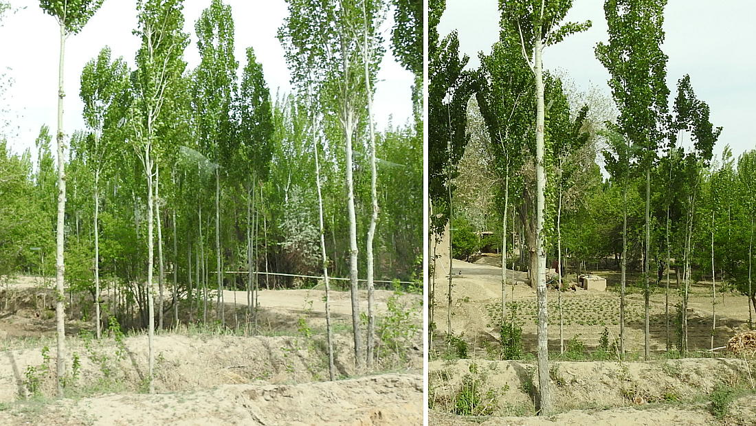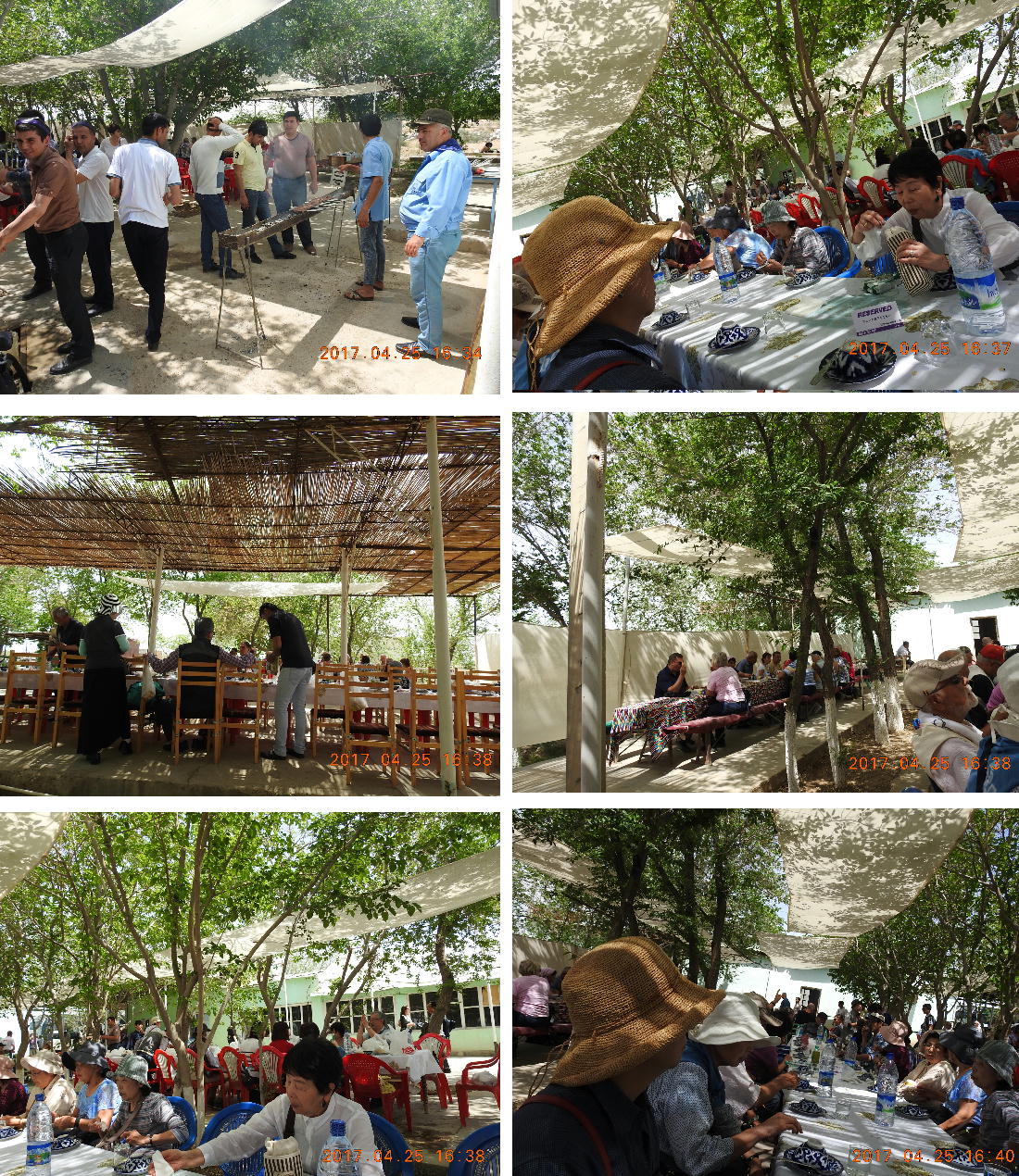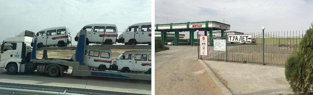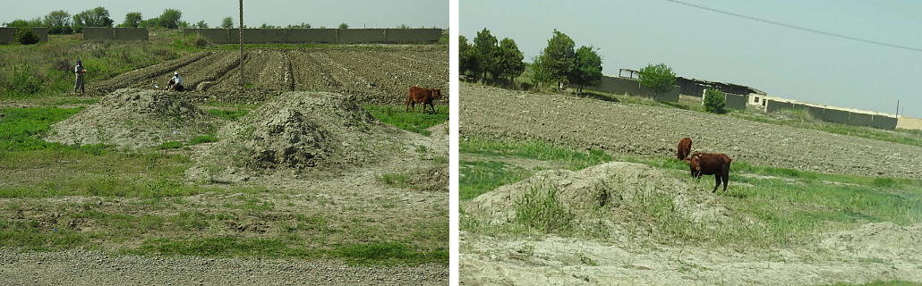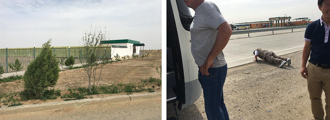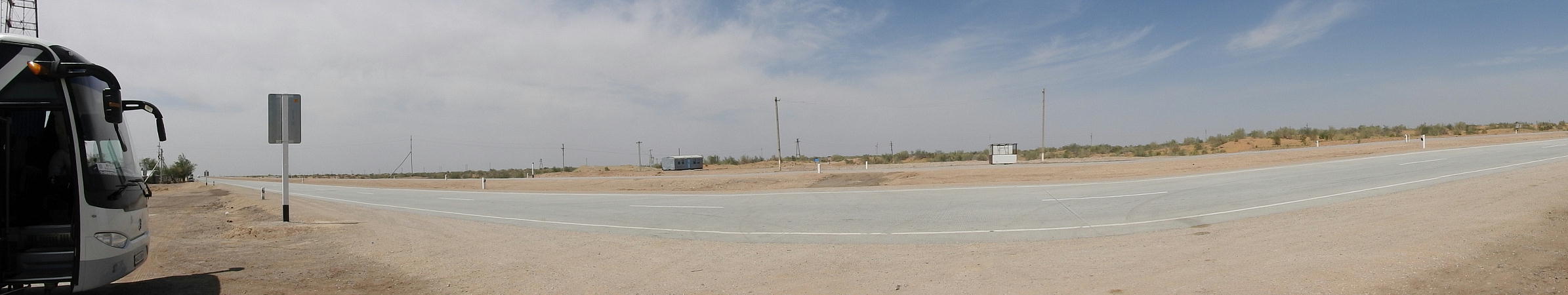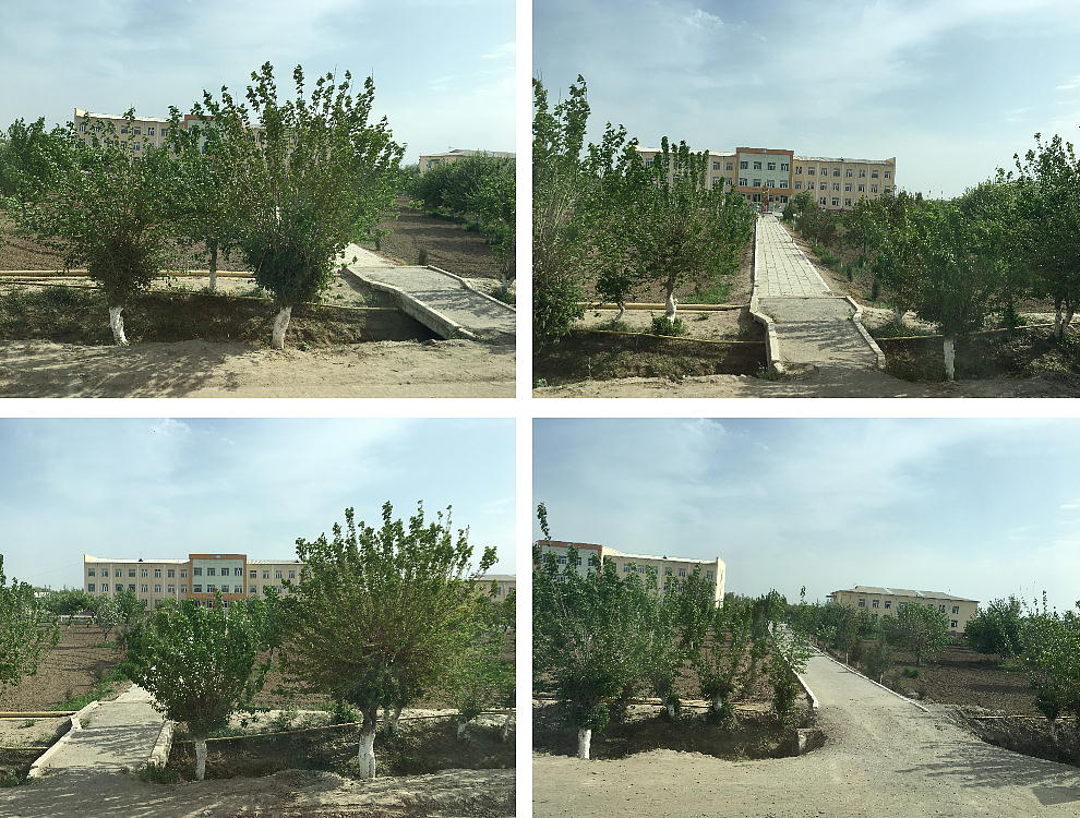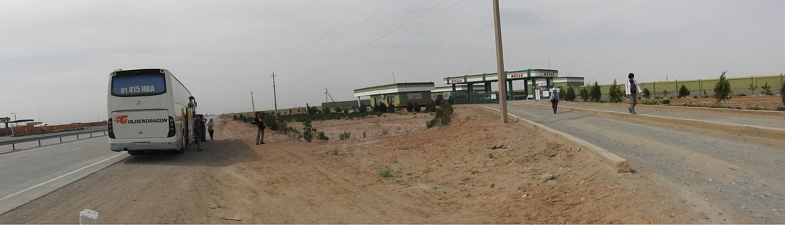 2017.4.25.(火) 〜ブハラからヒワへ〜 キジルクム砂漠をゆく 今日はキジルクム砂漠をバスでゆく。ブハラーヒワ間約450km。終日バスの中である。高速道路 があれば4〜5時間なのだろうが、日本の高速道路に匹敵するような道はない。戦後すぐのようなデ コボコ道と、舗装された道との組み合わせだ。一応8時出発で5時半到着予定だから、9時間半の移 動予定。途中のオアシスでの昼食と、2回のトイレタイムがあったのでそれを差し引いても、ま、8 時間ほどのバスの旅だった。飛行場も鉄道もないのでバスでゆくしかないのである。しかし車が出現 するまでは、この道を馬車と駱駝の隊商達が徒歩で通っていたのだ。 いざ、キジルクム砂漠縦断の旅へ出発。 東トルキスタンのゴビ砂漠のような礫(れき)の砂漠ではなく、タクラマカンのような砂の砂漠でも ない。荒れ地に灌木が点在する、まさに「荒野」という形容がぴったりの砂漠だった。 ブハラとヒワの間にはこの道路しかない。鉄道は建設中だがまだ完成していないし、ヒワには空港は あるが、ブハラには無いようだ。あったとしても、このツアーではその費用を出せないのかもしれな い。延々とバスで移動など、何か無駄な行程のような気がしたが、存外おもしろかった。果てしなく 続く砂漠にも、様々な表情があるのだ。乗客の殆どはその行程の大半を眠っていたようだが、私は砂 漠を見続けながら、深遠な宇宙の真理など、様々な思索にふけっていた。 さぁそれでは、延々と続く砂漠の旅をご覧ください。今日は一日これです。 まだブハラの近郊だからか、結構農作業の機械や人を見る。 小さな村のような集落が点在している。 <キジルクム砂漠> 出典:ウィキペディア他 キジルクム砂漠(英語:Kyzyl kum)は、カザフスタン、ウズベキスタン、それにトルクメニスタン の一部にかけて広がる砂漠。キジルクムはテュルク諸語で「赤い砂」を意味する。面積は約29万8000 km2。北東にシルダリヤ川、南西にアムダリヤ川が流れている。金や天然ガスといった資源が眠り、 川やオアシス周辺では農業がおこなわれている。 ウズベキスタン北西部のキジルクム砂漠には、古代ホレズム王国の都城遺跡(カラ)が点在している。 荒涼とした砂漠に聳える遺跡群で、アヤズ・カラが有名。今回は訪れないが、上の地図には示されて いる。しかしヒワ(ヒヴァ)のイチャン・カラは、1990年にユネスコの世界遺産に登録されているし、 ヒワの旧市街地でこの王国のよすがを今も忍ぶことができる。 イチャン・カラ(ウズベク語: Ichan Qa'la)とは、中央アジア、西アジアの都市に見られる市街地の 形態である。城壁に囲われた市街地で、日本語に直訳すると「内城」となる。城壁の外に発展した郊 外の区域は「デシャン・カラ(ディシャン・カラ、外城)」と呼ばれる。 <古代ホレズム王国> 出典:[国立情報学研究所] 『"古都ホレズムは中央アジアのエジプトである" ― 人類の文明を探求し続けてきた考古学者らは、 古代ホレズムの研究を通じ、偉大な結論に辿り着いた。彼らはホレズムの文化・芸術・歴史は中央ア ジアの発展に密接に関係していることを証明したのである。』 <ソ連の民族学者 S.P.トルストフ> 地理的にホレズムという地域はアラル海の南東、アムダリヤ川下流の両岸と、イラン北東部付近一帯 を指します。また、アラル海の南西部にある乾燥したウスティユルト高原の南側地域と、アムダリヤ 川とシルダリヤ川に挟まれた地域も含みます。現代ではウズベキスタン共和国内にあたり、古くはシ ルクロード上の重要な地域であったところです。 ホレズムという名称はアヴェスタと呼ばれるゾロアスター教の経典の中で記述されています。アヴェ スタには当時、イラン東部と中央アジアには経済格差のある階級社会が存在していたこと、また、国 家を形成していた聖職者、軍人、農夫、職人、奴隷らについても詳細に記されています。また“アリ アナム・バイジャ”の地で起こった物語が翻訳されており、権威あるホレズムの科学者によって立証 されています。 11〜13世紀のホレズム帝国にはパルティア(カスピ海南東部、イラン高原東北部)、メルブ(トルク メニスタン)、ソグディアナ(ウズベキスタンのサマルカンド州とブハラ州、タジキスタンのソグド 州)、ホレズム(ウズベキスタン西部)が含まれていました。 中央アジアで最初の国家は、紀元前 9〜8世紀頃にアラル海南部のバクトリア地域で発展しました。 ホレズムは、紀元前6世紀に王国として発展しバクトリアとホレズムは、アムダリヤ川河口において、 開拓地を共有していました。乾燥したホレズム地方での最初の灌漑工事が紀元前6−5世紀頃から始ま ったと言われています。住民は、主に村では農夫、都市では職人と貿易商で占められていましたが、 遺跡の発掘により科学者の存在も確認されています。 ホレズム人は天文学、数学において高い知識を持っており、角度を測定する道具を発明し、それらを 科学の研究に使用して
