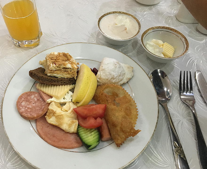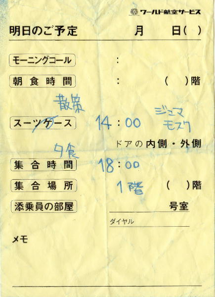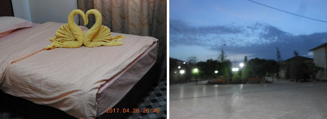 部屋にはまたバスタオルで作った飾り物が。明日はいよいよウズベキスタンの首都タシケントへ。