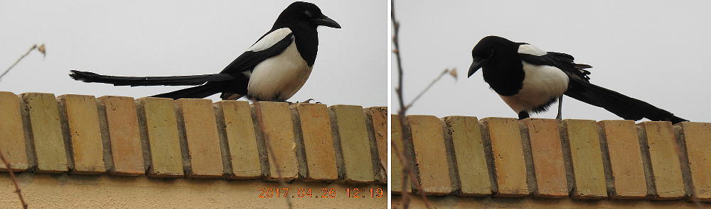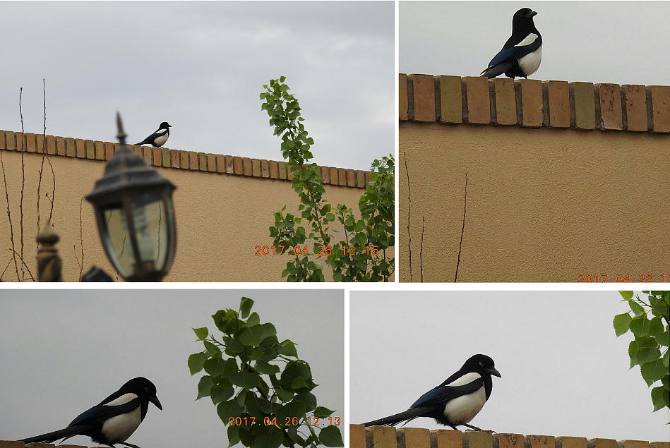 ホテルの外壁に飛んできたカササギ。ウズベキスタンはこれがほんとに多い。どこに行ってもいる。