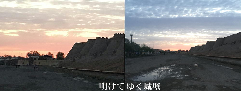 今日は、世界遺産イチャンカラの中を終日歩いて見学の予定。夜明けのヒワの街は素晴らしい