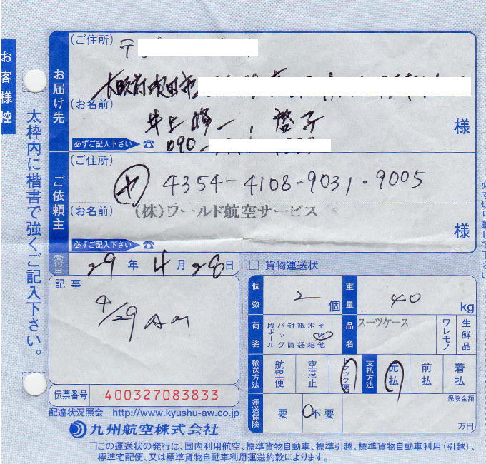 ワールド航空サービスでは、遠方からの参加者の旅行カバンを、なんと自宅まで宅配便で送り届けて