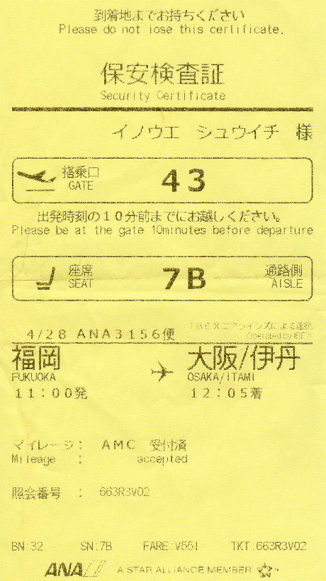 4月28日(木)ウズベキスタンから帰国 板付から伊丹へ