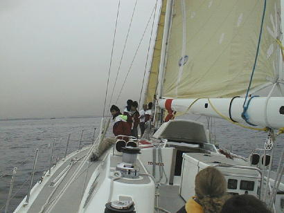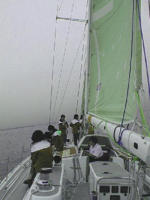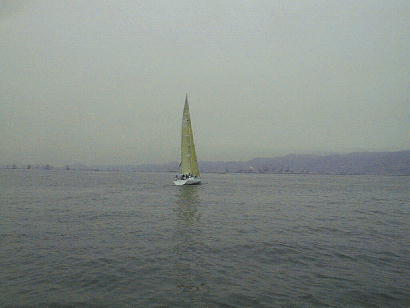後は風まかせ。風があれば早い、早い。ヨットとはこんなに早く走るものかと感心した。