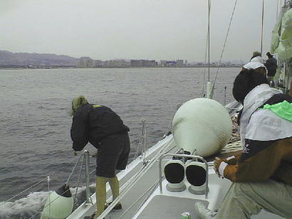 98年6月上旬のある日、兵庫県西宮港からヨットに乗った。仕事の関係で、2漕の大型ヨットに試乗する事になったのだ。英国製の大型ヨットで、詳しい人によるとこのクラスのヨットは