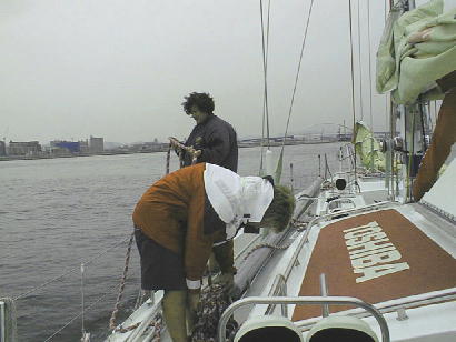 ヨットは我々を降ろすと、待機していた他のクルーを乗せそのまま韓国の釜山港に向けて出発してしまった。何でも神戸港での税