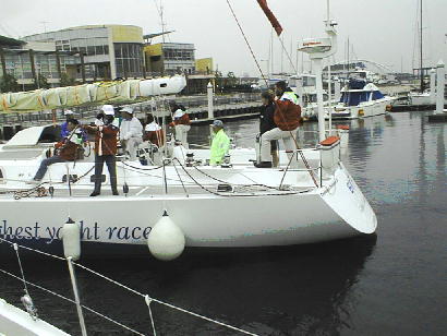 世界一周をしてきたヨットだけにでかい。クルーは10人強乗り込めるようになっている。