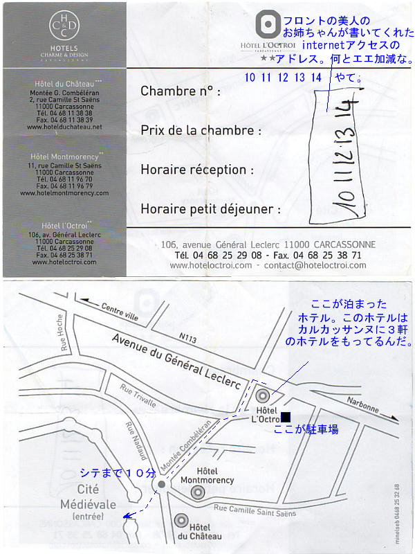 見て綺麗で良さそうなホテルを選び電話をかける。アルルから100kmくらい離れたところだ。フランス語は分からないので英語の