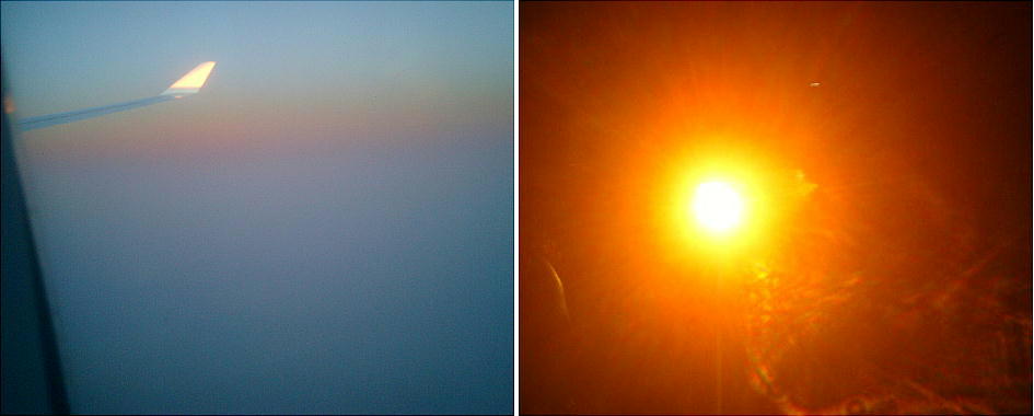 飛行機の窓から見たフランスの太陽。フランスのちゅうことは無いか。