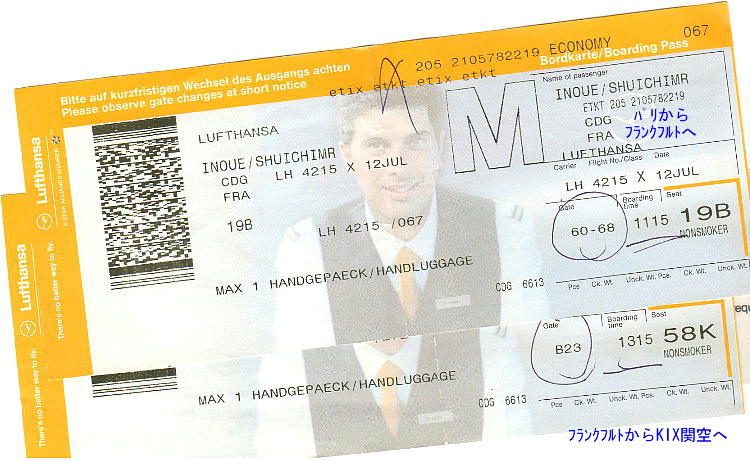 例によって機内Movieを何本か見て、ビールを呑んで機内食を2,3度食べ、7月13日AM8:20分関西国際空港着陸。やれやれ、今日も生き延びた。