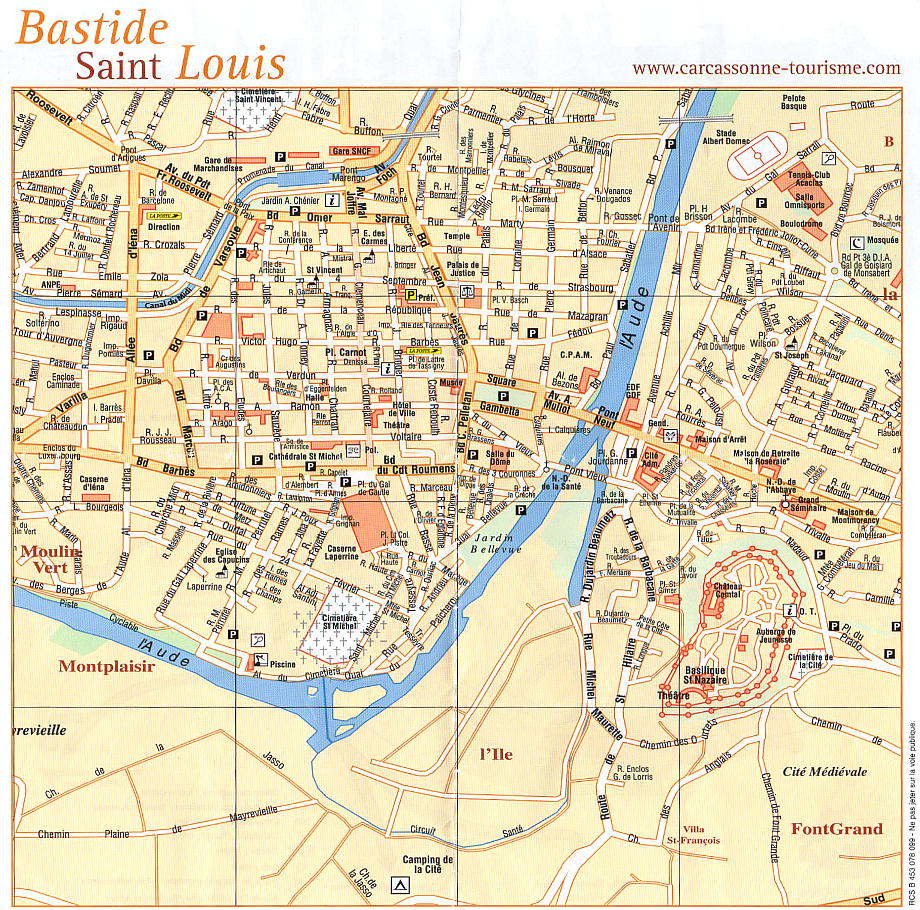 古代ローマ時代から発達した城塞都市であるシテ(cite, またはville haute)と、オード川をはさんだ向かいに展開した下街(ville