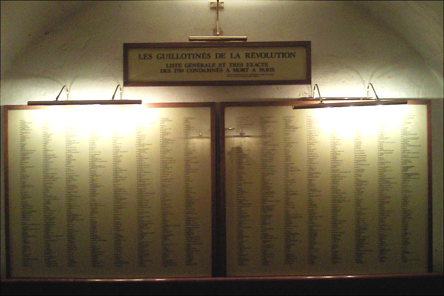断頭台の露と消えた人々の名前が書いてある。2600人が処刑された。