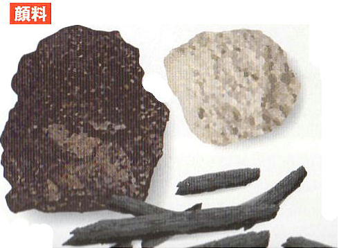 クロマニョン人達が絵を描くのに用いた顔料と考えられている鉱石や赤土等。