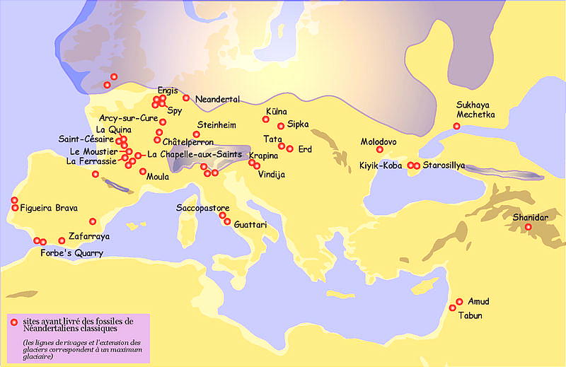ネアンデルタール人遺跡の分布