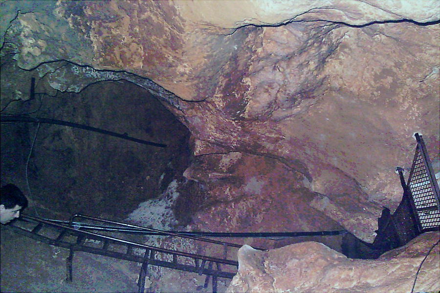 洞窟の出口。上左の茶色のジャケットを着た兄ちゃんがガイド。