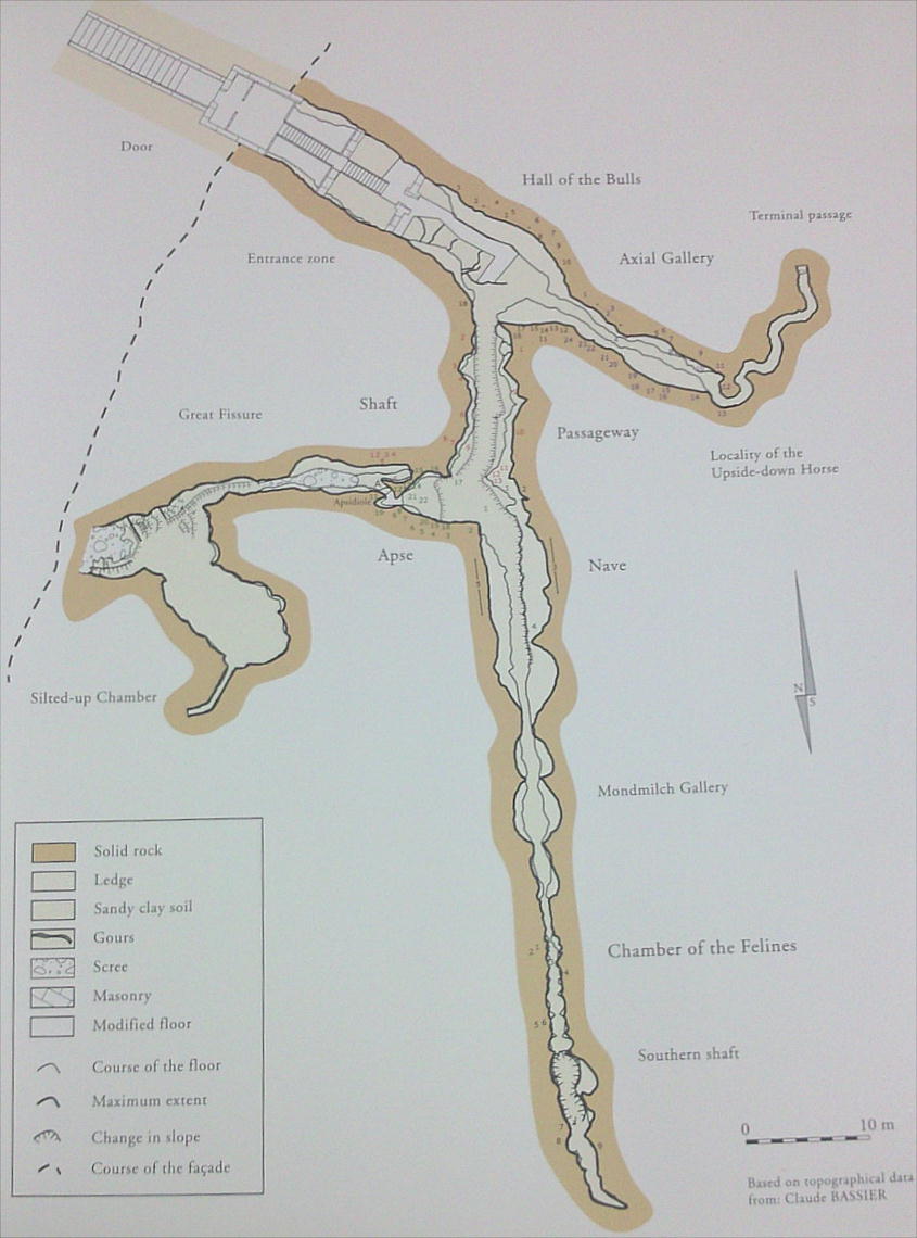 る大空間などがいくつかある。洞窟の側面と天井面(つまり洞窟の上半部一帯)には、数百の馬・山羊・羊・野牛・鹿・かもしか・