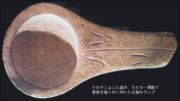 油を入れて、明るくして壁画を描いたのだ。そうだろうなぁ、こんな真っ暗な中では灯りが無いと何も見えんし。1万5千年