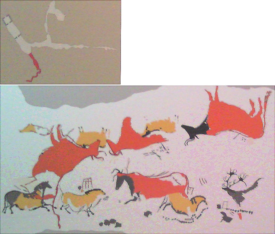 洞窟の形状は勿論のこと、絵の具や道具まで当時と同じ物を使い再現されたと言う。見事な出来映えである。