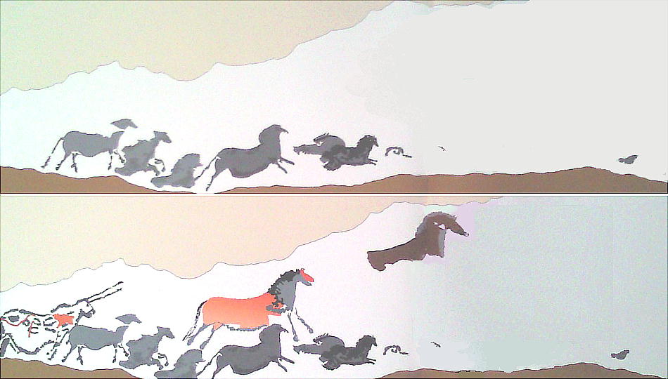 どだ。それにしても動物たちの躍動感は素晴らしい。今にも走りだしそうである。これが二万年前の人間達が描いたものだとは