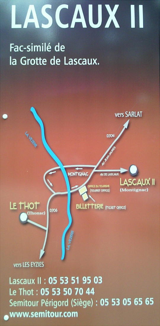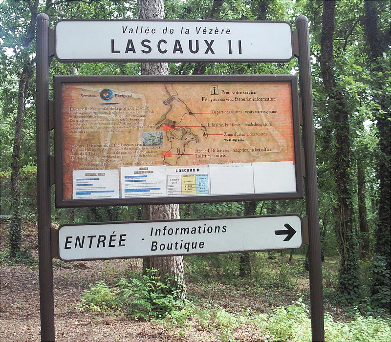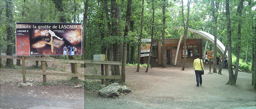 るのだ。下の写真がホンモノのラスコー洞窟。ここからは数十m先にある。上の看板の示す方へ行けば、入口までは行ける。