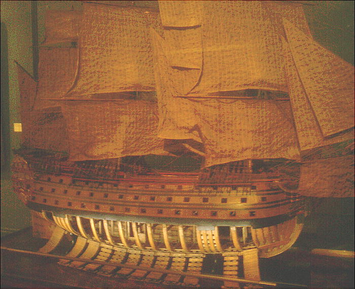 ルイ王朝時代の豪華な軍艦やアメリカ大陸を発見したコロンブスが乗っていたサンタマリア号の模型、近代の豪華客船の模型など